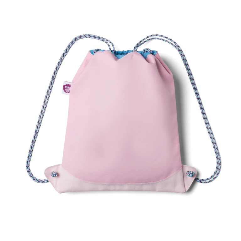 – Egal ob Klein oder GroĂź: Versetzt man den Knoten an der Kordel, passt der Turnbeutel an jeden RĂĽcken und der lustige Sportausflug ist gerettet.