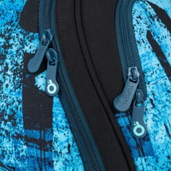 Das breite Rückenfach des Rucksacks ist geeignet für alle Lernmaterialien. Im Rückenfach befindet sich zudem eine gepolsterte Tasche für ein Notebook, die Sie auch als Tasche für Notizblöcke oder A4-Ordner nutzen können. An der Tasche ist eine weitere kleine gepolsterte Tasche angenäht, in der alles verstaut werden kann, was man im Rucksack sicher verstauen möchte – zum Beispiel ein Handy oder eine Powerbank. Das Vorderfach des Rucksacks ist schmaler, innen befindet sich eine kleine Netztasche mit Reißverschluss und ein auf Gummizügen aufgenähter Karabiner für Schlüssel.