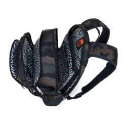 Camouflage-Rucksack mit modischem Aufnäher. Der Rucksack mit zwei Kammern und gepolstertem, anatomisch geformtem Rücken ist dank der leichten Aluminiumverstärkung sehr robust. Das große Fach enthält ein gepolstertes Fach für Laptop und Tablet und ein kleineres für ein Handy oder eine Powerbank. Das unsterbliche Tarnmuster wird alle Soldaten und Naturliebhaber erfreuen.